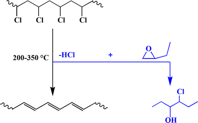 4. Khi PVC bị gia nhiệt tới khoảng >170 °C, quá trình phân hủy bắt đầu, dẫn đến mất Cl và hình thành các cấu trúc liên kết đôi, làm vật liệu chuyển màu và giòn hơn.